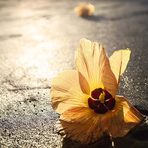This tropical flower only blooms for one day. In Tahiti, this specific hibiscus flower is called ‘purau’.
